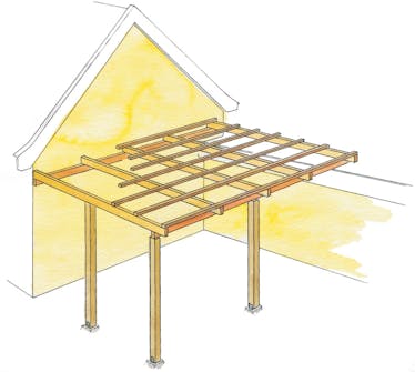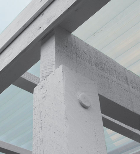 Allt virke till terrasstaket, inklusive stolparna, är tryckimpregnerat.