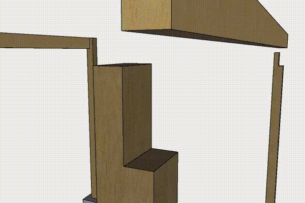 Stolparnas höjd och urtaget för överliggaren markeras. Det gör vi med krita för att vi tydligt ska se var vi ska såga. Vi överför höjdmarkeringen från sida till sida med vinkel.