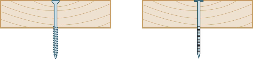Det yttre lagret brädor fästs med två skruvar i varje regel - upptill, nedtill och i mitten. Placera skruvarna så att de inte går genom det inre lagret brädor.