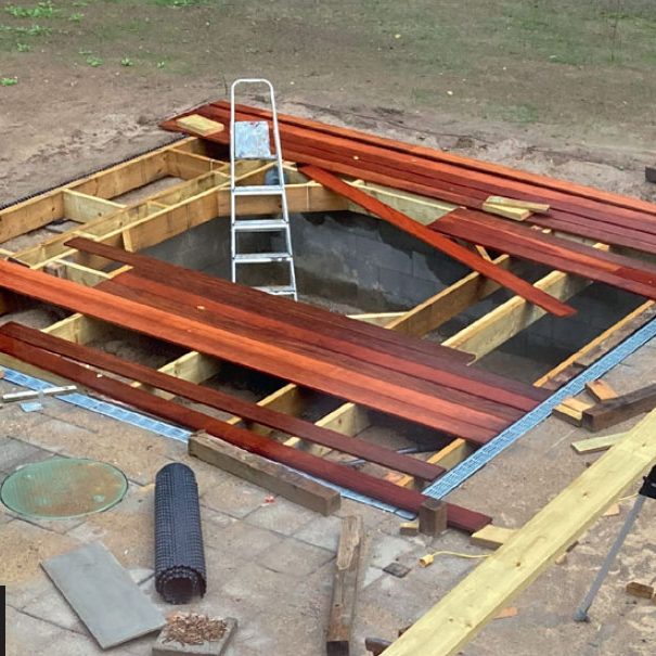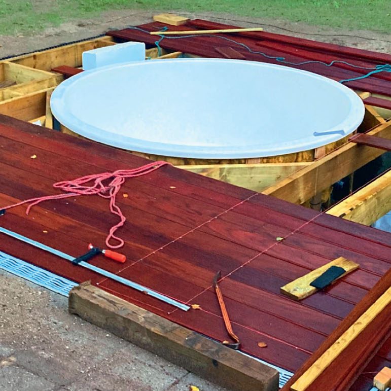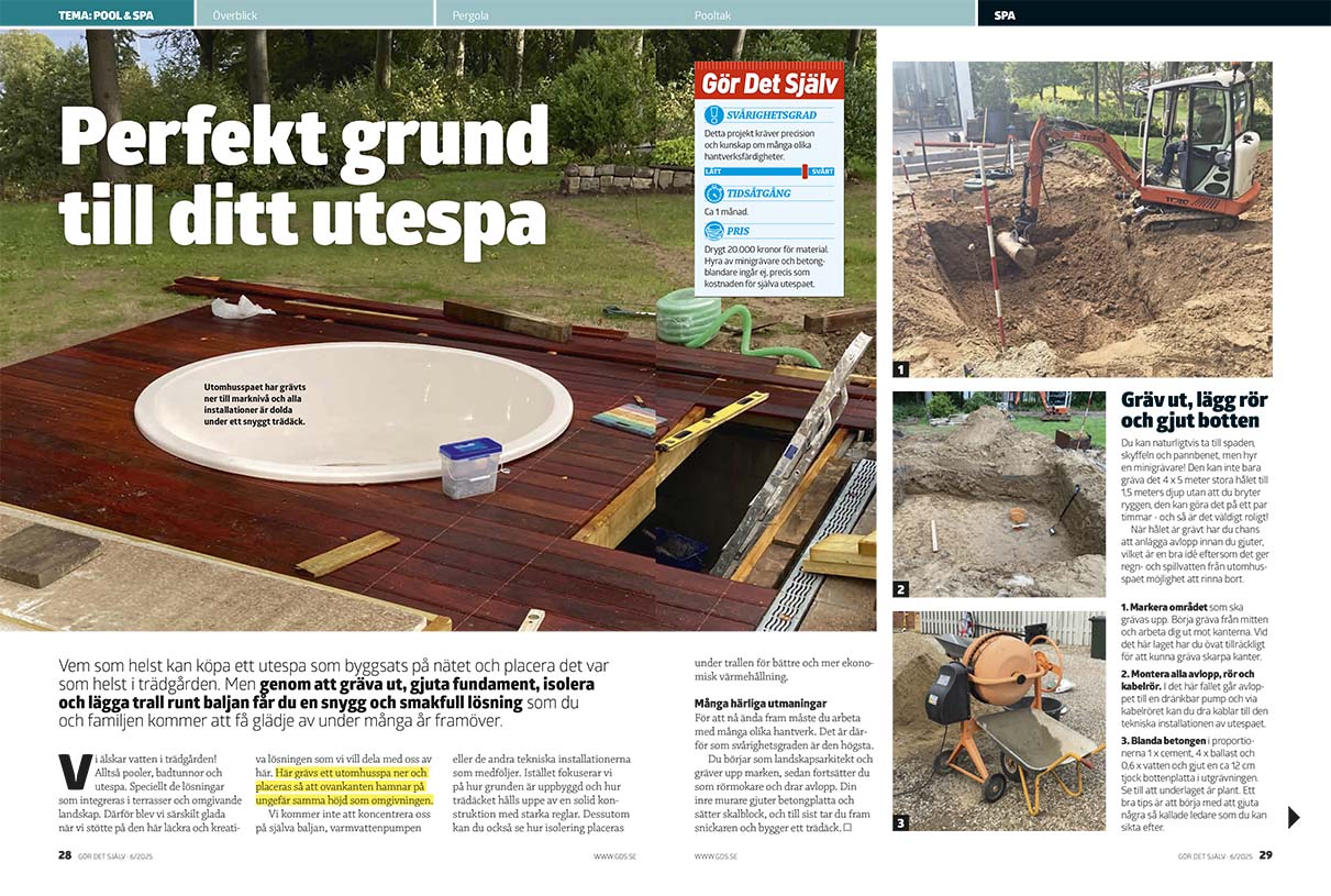 När hålet är grävt har du chans att anlägga avlopp innan du gjuter, vilket är en bra idé eftersom det ger regn- och spillvatten från utomhusspaet möjlighet att rinna bort.