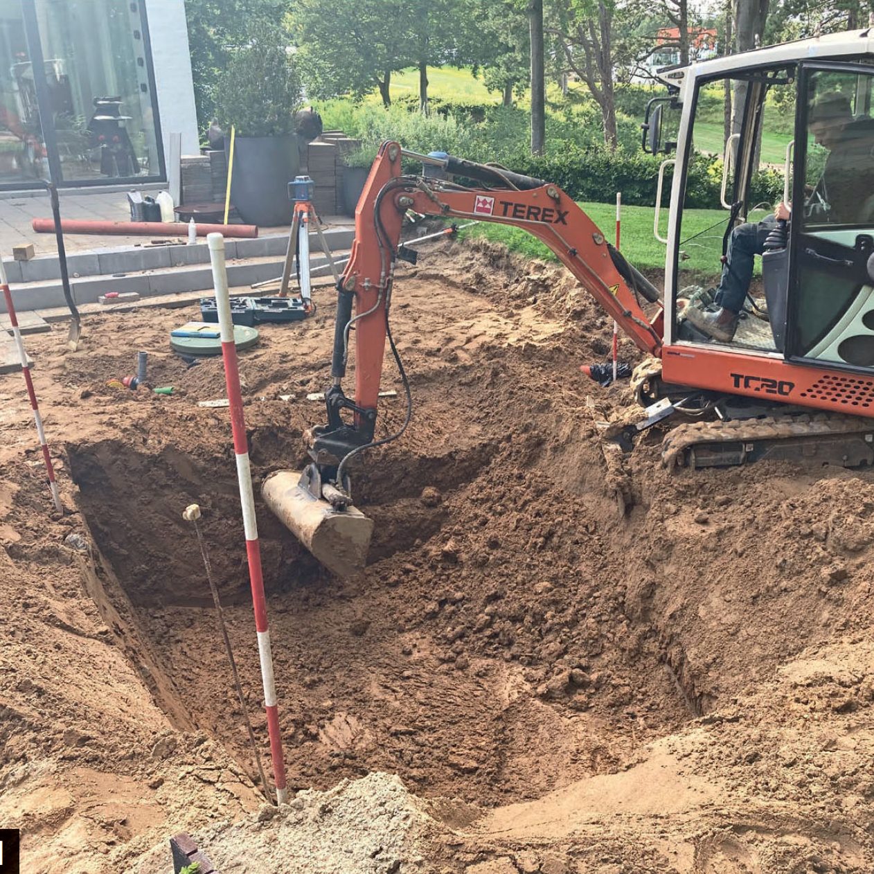 Du kan naturligtvis ta till spaden, skyffeln och pannbenet, men hyr en minigrävare! Den kan inte bara gräva det 4 x 5 meter stora hålet till 1,5 meters djup utan att du bryter ryggen, den kan göra det på ett par timmar - och så är det väldigt roligt!