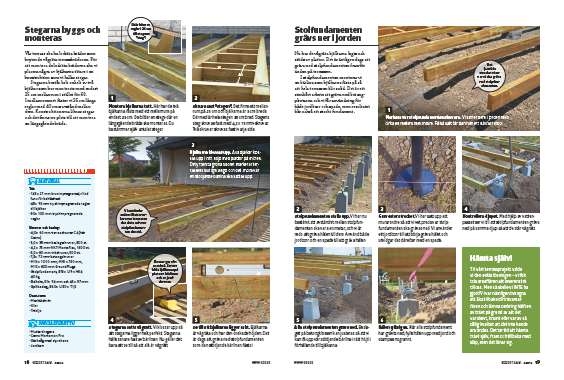 Som du kan se i bygginstruktionerna är det inte svårt att bygga stegarna till monteringen, men det kräver att du noggrant räknar ut var fälten ska ligga. Vi bygger även en läcker, helt skräddarsydd trappa som gör att man snabbt kan ta sig ut i trädgården.