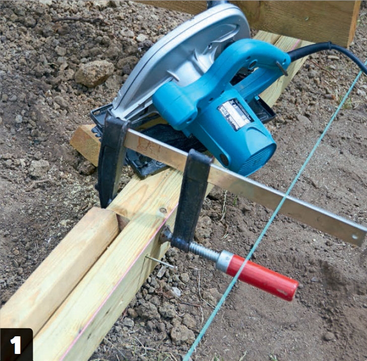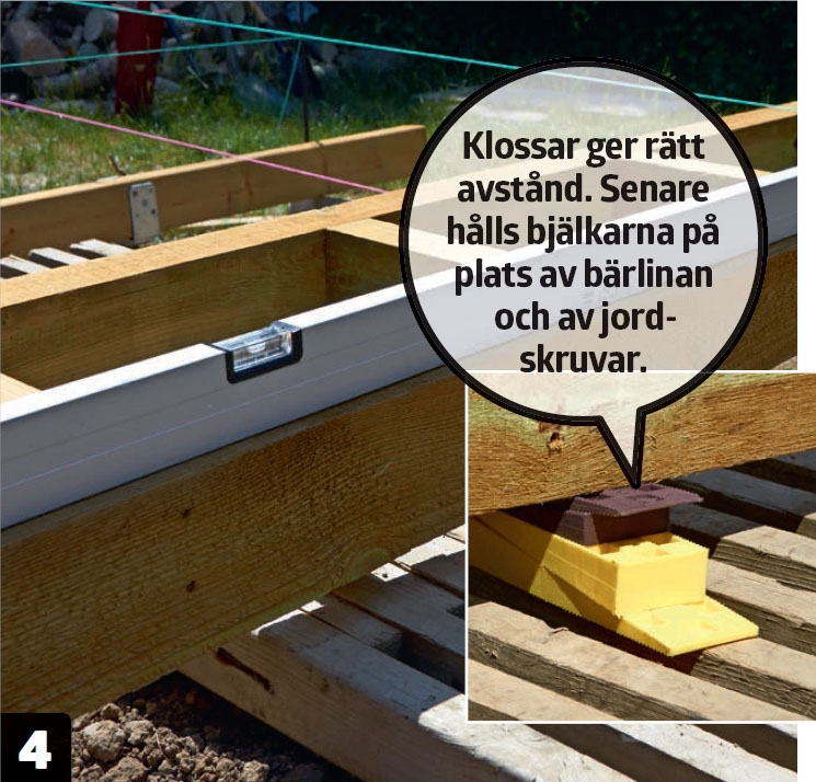 Skruvarna skruvas i med en meters mellanrum så att toppen av skruvarna är i linje med bjälkarna.