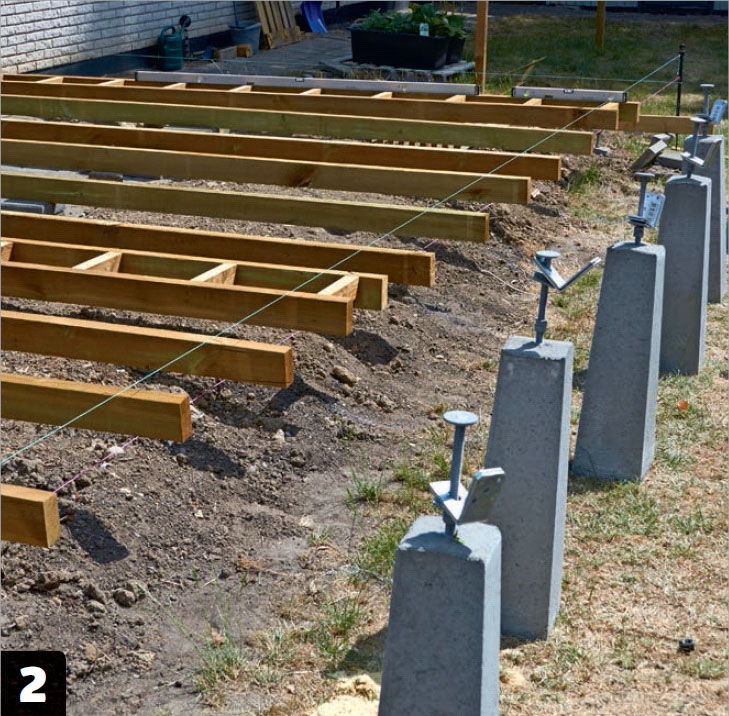 Fundamentet är en stor del av arbetet med den här träterrassen, men vi ska naturligtvis även klä den med terrassbrädor.