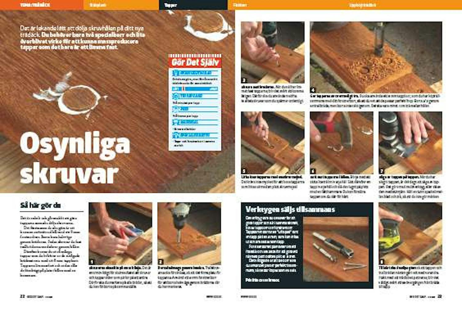 Det är enkelt och går snabbt att göra tapparna som ska dölja skruvarna.
