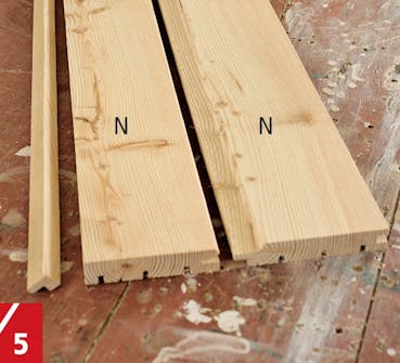 • 4 brädor à 88,3 cm (N), sågade upp- och nertill för att passa i storlek