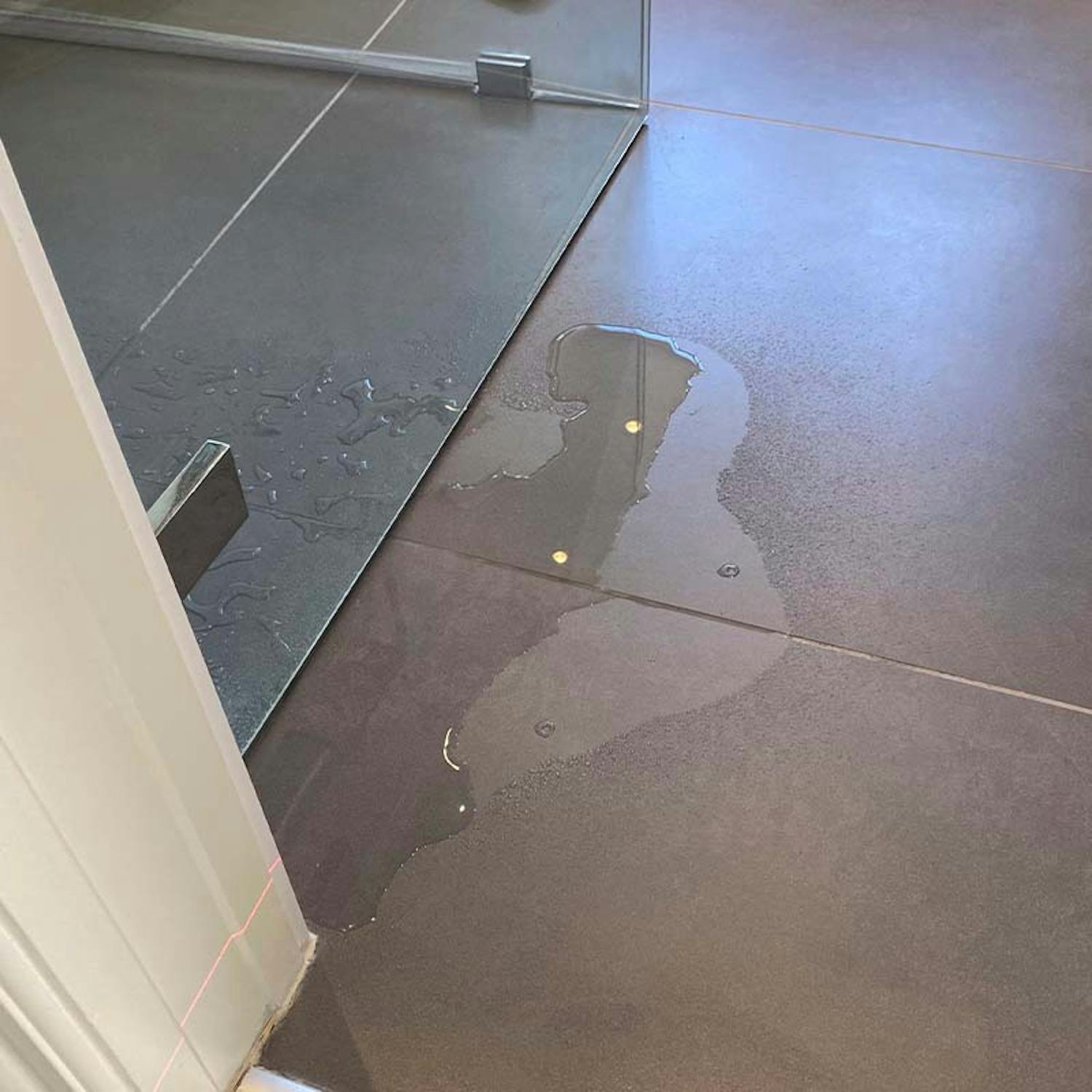 Det är ett klassiskt men också väldigt allvarligt fel: Golvet lutar bort från den brunn som ska leda undan vattnet.