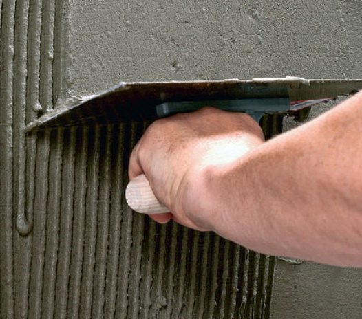 Stryk på kakelfix på ett litet område åt gången med en tandspackel. Stryk inte på mer än vad du kan täcka med kakelplattor i ett enda arbetsmoment - det motsvarar ca 2-3 kakelrader.