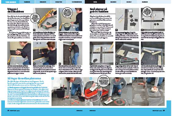Även här är det en god idé att göra en provuppläggning. Då kan du vara säker på att plattorna blir fint fördelade, och du inte får pyttesmå bitar ute i sidorna.