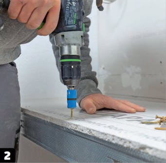 Skruva fast bänkskivan med specialskruv. Det finns skruvar som kan borra genom cementskivor och stålreglar. Med dem slipper du förborra och sparar tid - och pengar till nya borr.