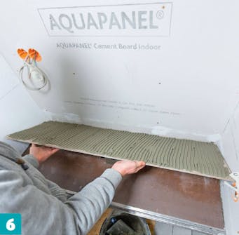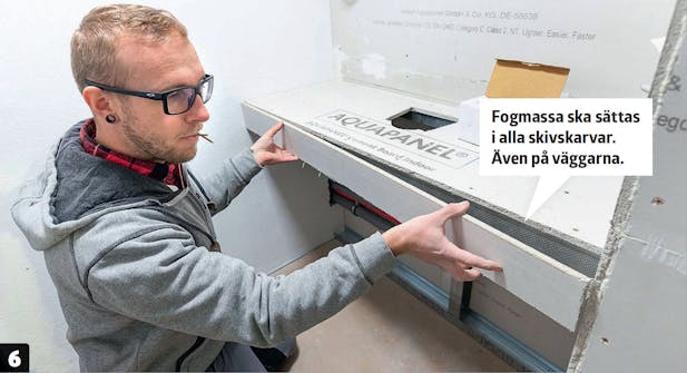 - 12,5 mm fiberförstärkta våtrumsskivor (här Knauf Aquapanel Indoor, 90 x 125 cm)