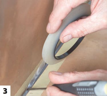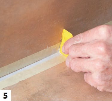 Sätt tejp innerst när du har satt maskeringstejp längs fogen. Tryck fast tejpen ordentligt mot kanten ner mot fogen.