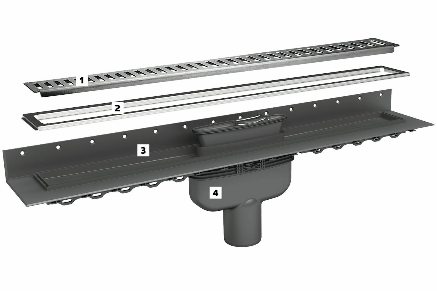 Om du drömmer om ett linjeavlopp som fungerar lika bra som ett från Unidrain, är Purus Line ett alternativ. Paketet innehåller fyra delar.