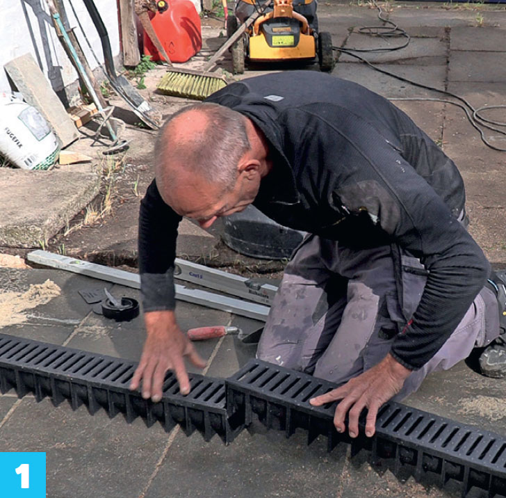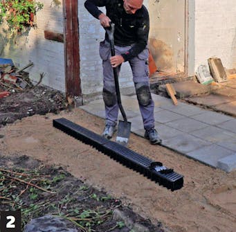 Monteringen av markrännan är hyfsat enkel om det redan finns en stenbeläggning med fall.