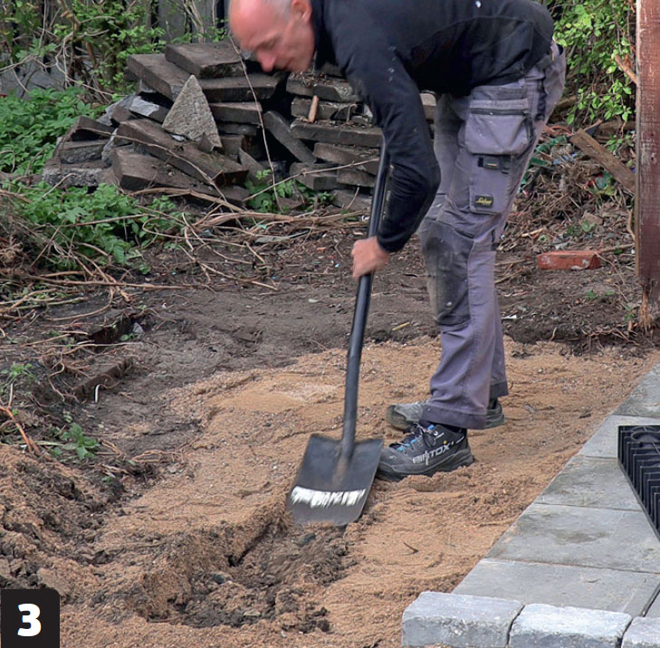 Gräv ut för markrännan. Förutom sand, grus och jord, se till att det inte finns några rötter eller liknande som kan komma i vägen för markrännan.