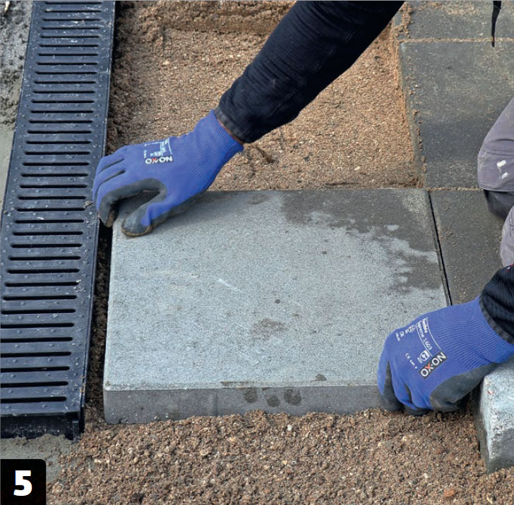 Du måste se till att de översta centimetrarna av markrännan inte täcks av betong. På så sätt finns det utrymme för att lägga plattorna nära den. Hur stor del av rännan du ska hålla fri beror på höjden på de plattor som ska läggas.