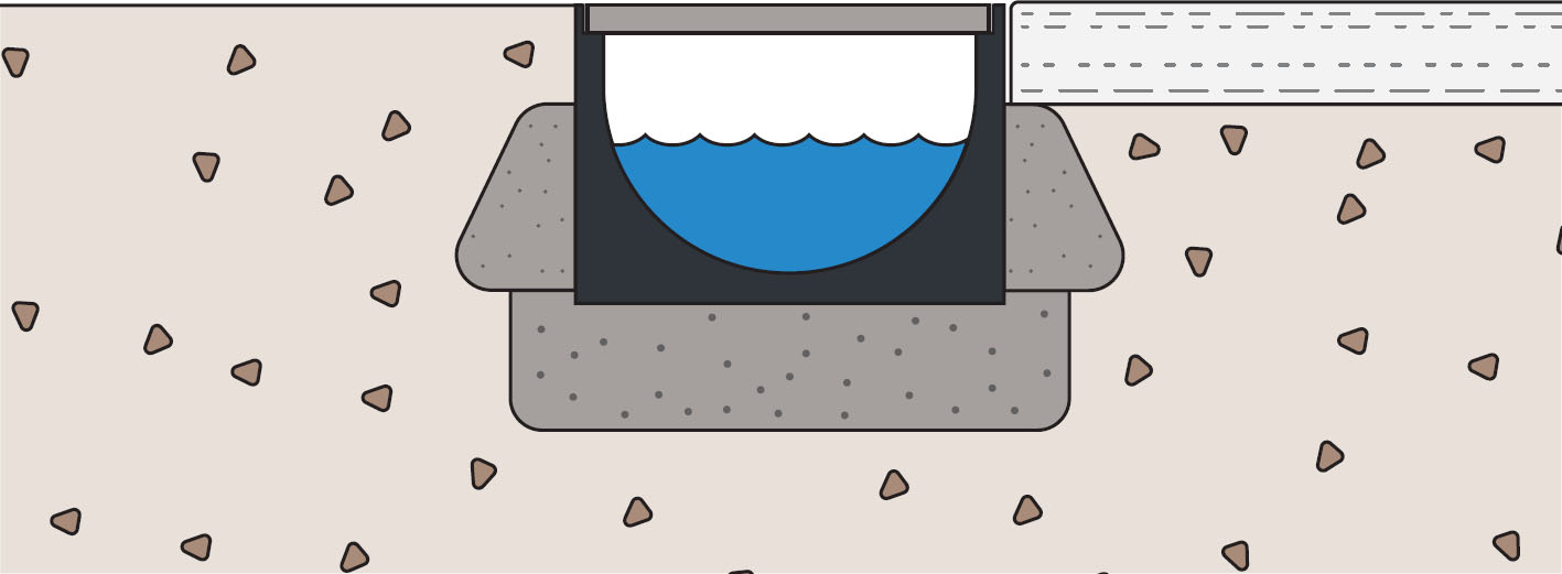 Placera slutligen markrännan i diket och gjut in den i ett betongskal. Betongen både skyddar rännan och förankrar det ordentligt.