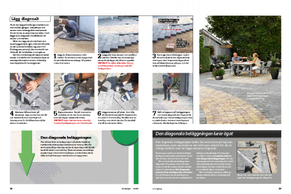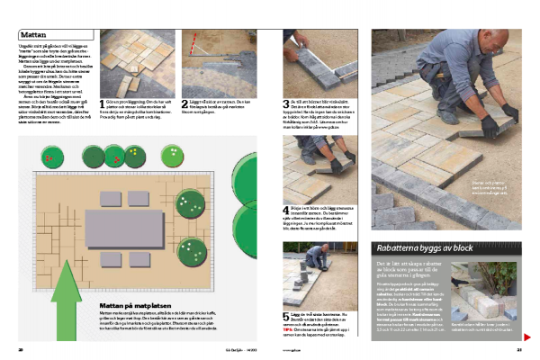Gör en provläggning. Om du har valt plattor och stenar i olika storlekar så finns det ju en mängd olika kombinationer. Prova dig fram på ett plant underlag.