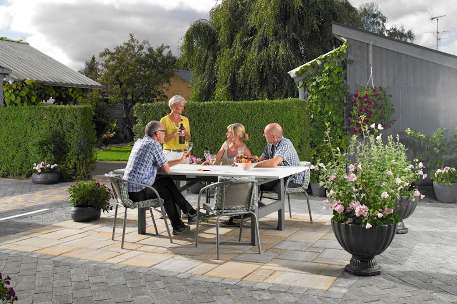 Denna uteplats på 85 m² blev klar efter drygt 2 veckor inkl. förarbete och fogning.