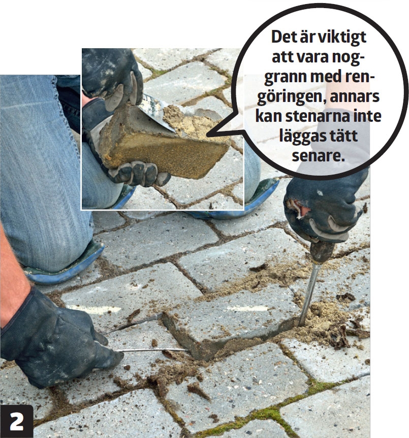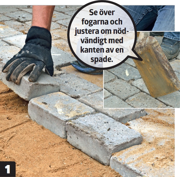 Viktigt! Borsta diagonalt över fogarna, annars borstar man lätt upp sanden istället.