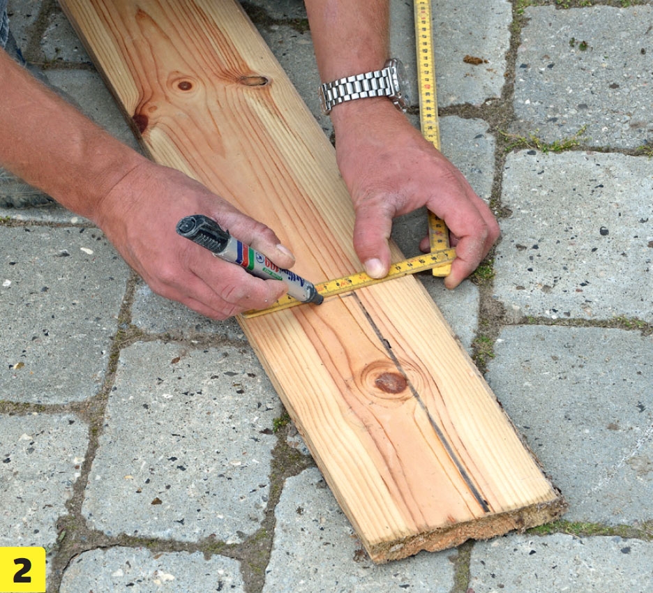 Börja med att mäta bredden där fördjupningen är som minst. För att få tillräckligt med utrymme att arbeta på är du tvungen att avlägsna sten i ett större område än själva fördjupningen, så du ska bara mäta själva utgrävningen. Dra av 10 cm och överför måttet till en bräda.