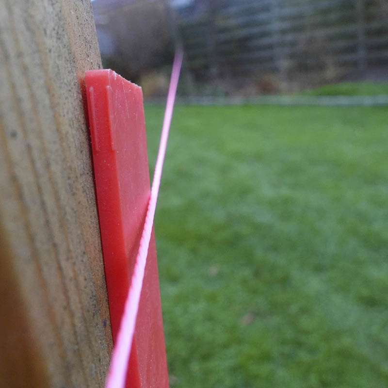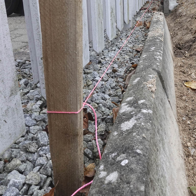 Snöret är uppspänt mellan två stolpar. Med ett laservattenpass har vi sett till att det sitter vågrätt.