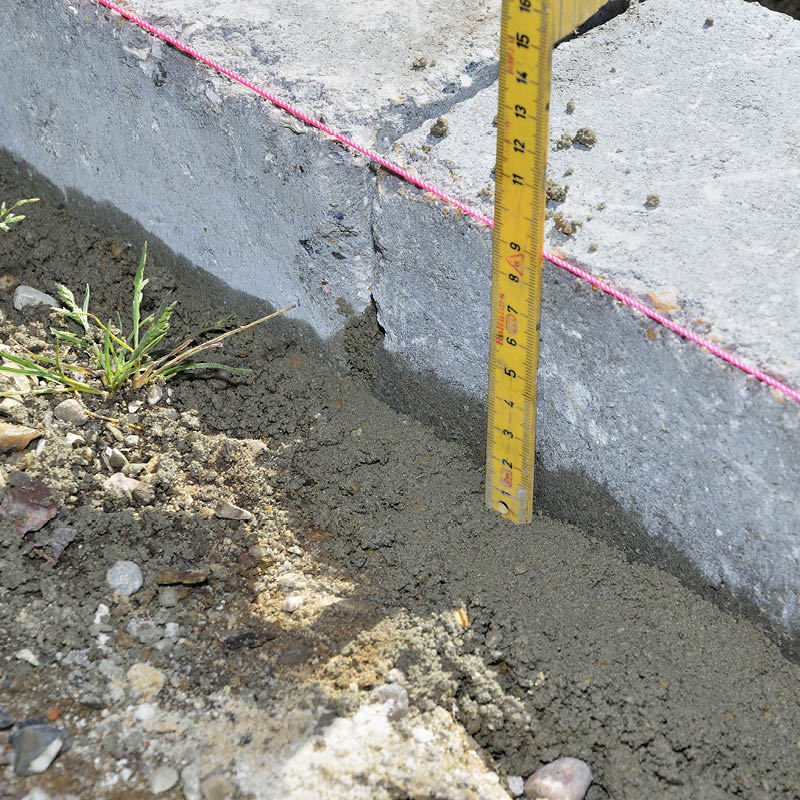 Ett snöre uppspänt mellan stolpar kan, med hjälp av ett laservattenpass, hålla en linje som du t ex kan följa höjden på en sockel med. Sänker du snöret i den ena änden, kan samma metod användas till en beläggning med fall.