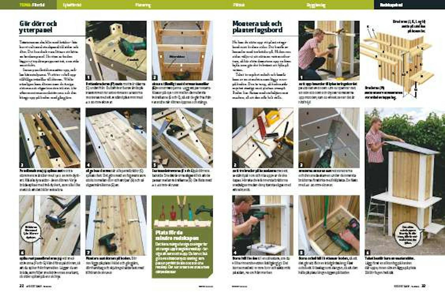 Sätt upp konsoler till planteringsbordet på utsidan av boden. Om du spänner fast en list vid boden och trycker konsolerna upp mot den, kan du enkelt se när det är rätt höjd.