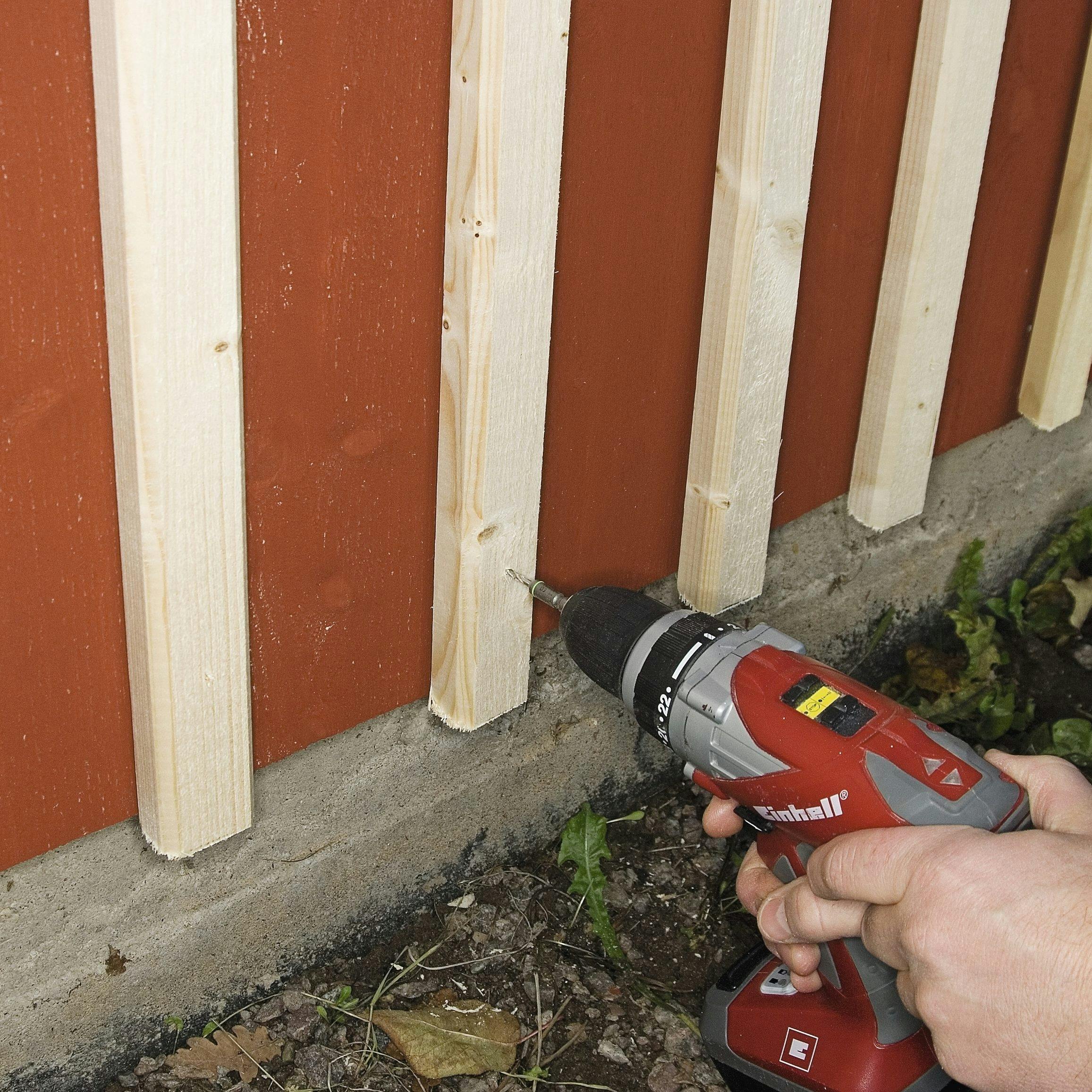 Viktigt: Brädorna monteras oftast liggande. Då börjar du nerifrån (och kommer att hålla minst 10 cm avstånd till marken), skruvar fast den första brädan och fortsätter uppåt.