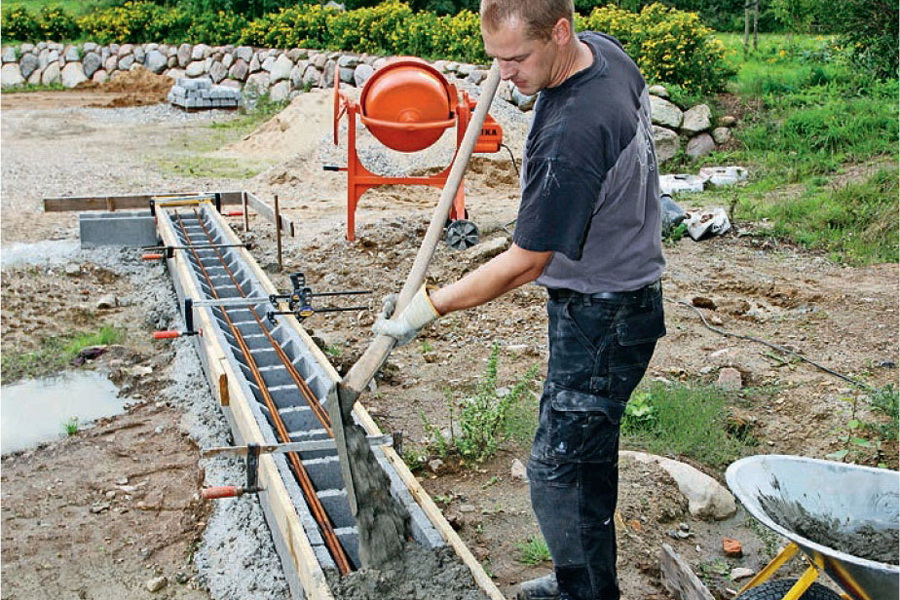 Ska du t ex gjuta fundament till förråd är det mest omfattande arbetet att mäta upp och gräva ut. Själva momentet att gjuta fundamentet kan göras på ganska få timmar.