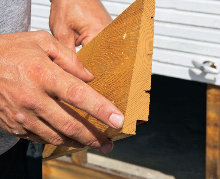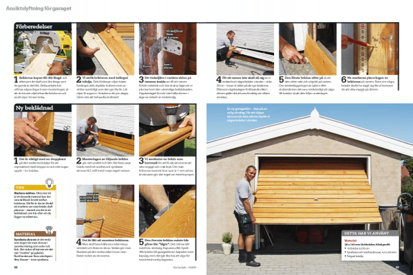 Brädorna kapas till rätt längd och eftersom de skall vara lika långa som de gamla är det lätt. Detta arbete bör utföras några dagar innan monteringen så att du hinner oljebehandla brädorna och så att oljan hinner torka.