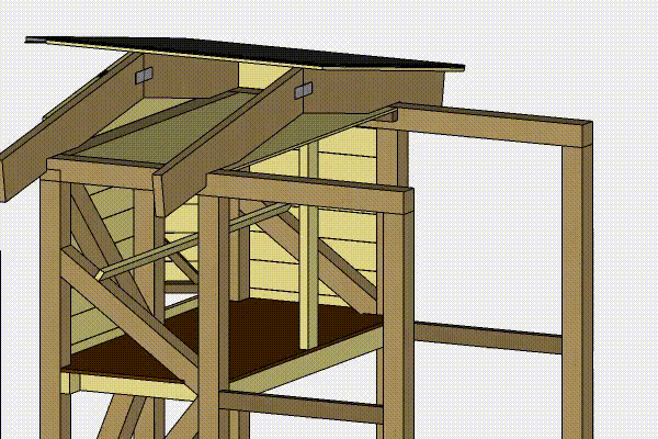 Reglar (H1 och H2) skruvas fast på topplattan över huset. De ska hålla hönshusets takplatta på plats.