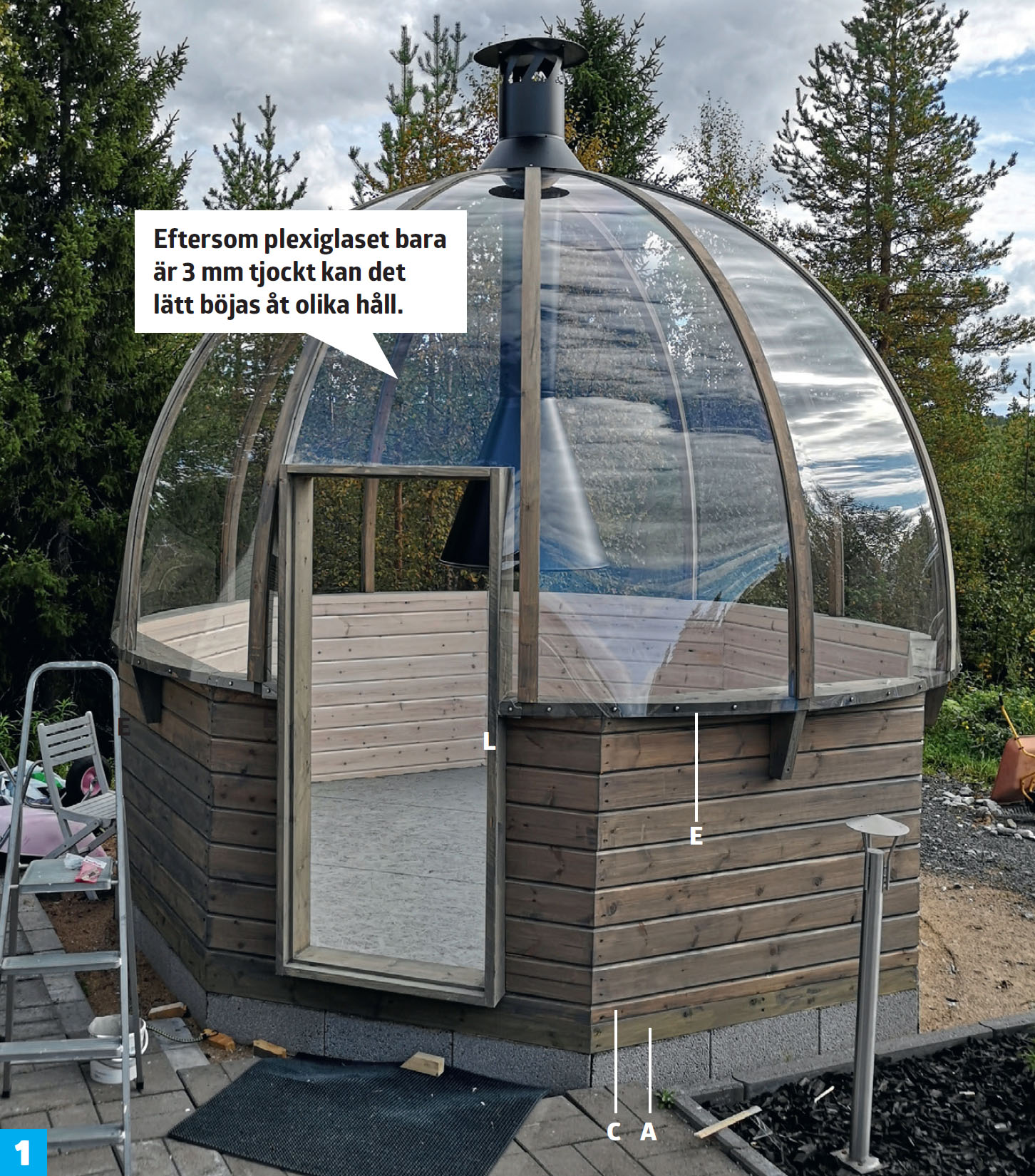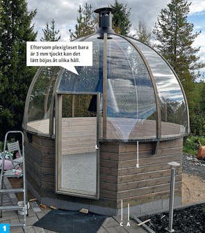När plexiglasrutorna sitter som de ska är det dags att fästa dem och sätta in en dörr, så att vi inte eldar för kråkorna.
