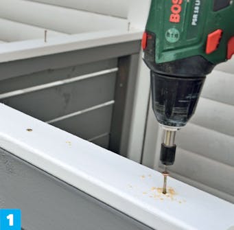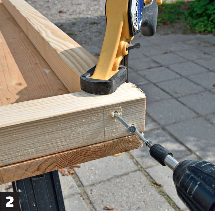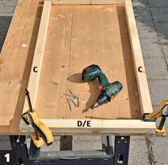 Skruva ihop ramarna. Du ska använda 5,0 x 90 mm skruv för att sätta ihop ramarna. Förborra med ett 5 mm borr och se till att de långa skruvarna inte hamnar snett - då är risken att de kommer ut på sidan.