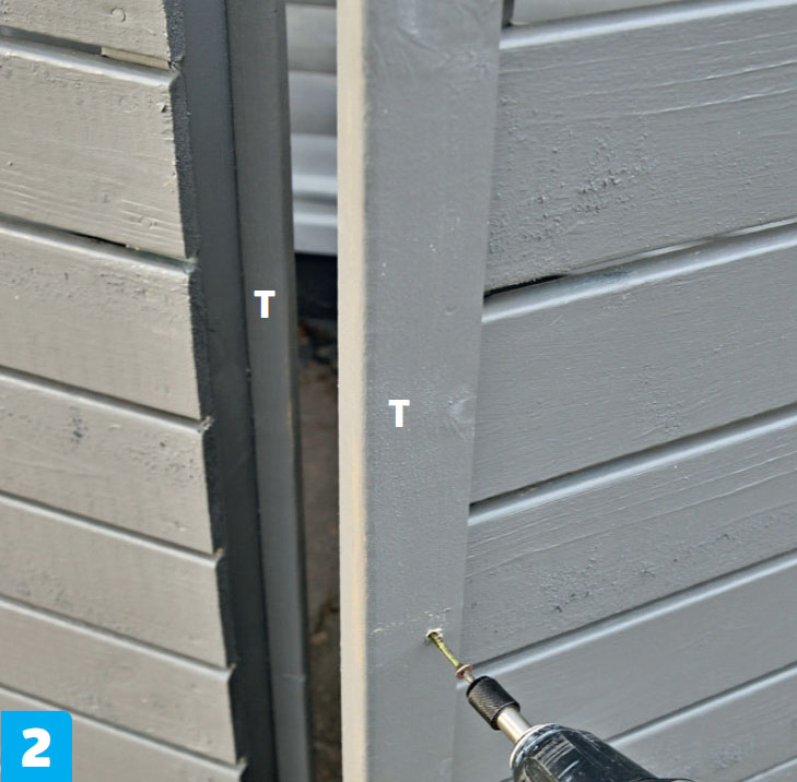 Fäst de lutande brädorna (H). Fäst brädorna på stolparna med 4,0 x 50 mm skruv, två eller tre skruvar i vardera ände.