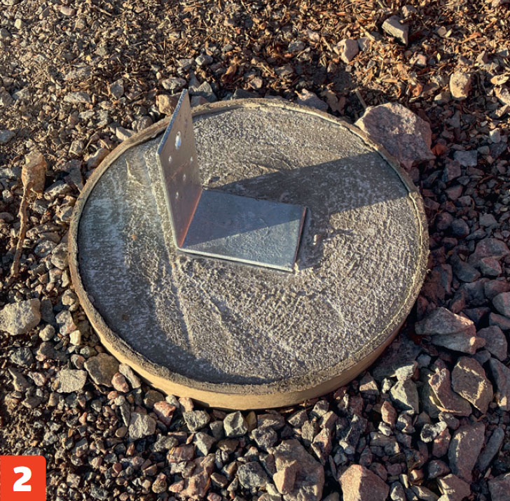 Gjut plintarna. Se till så att alla står med beslagen pekande in mot cirkelns centrum. På så sätt försäkrar du dig om att stolparna kommer att stå likadant. Beslagen ska passa till 45 x 95 mm reglar.