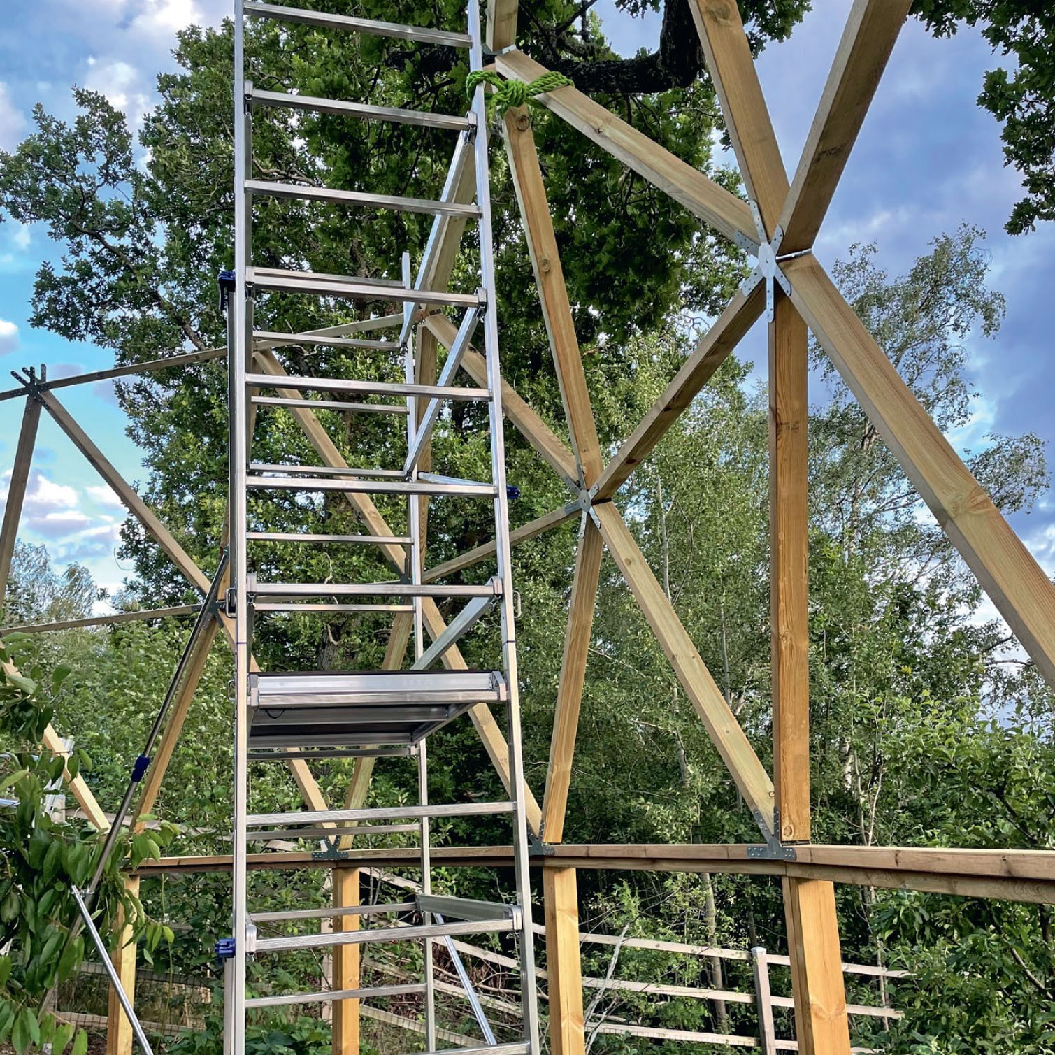Det andra lagret består endast av sexbenta skarvar och går snabbt att bygga, men redan i det tredje lagret finns både fem- och sexbenta skarvar, så då måste ritningen konsulteras hela tiden. Arbetet går gradvis långsammare och svårare, i takt med att både ställning och fallsäkring behövs.