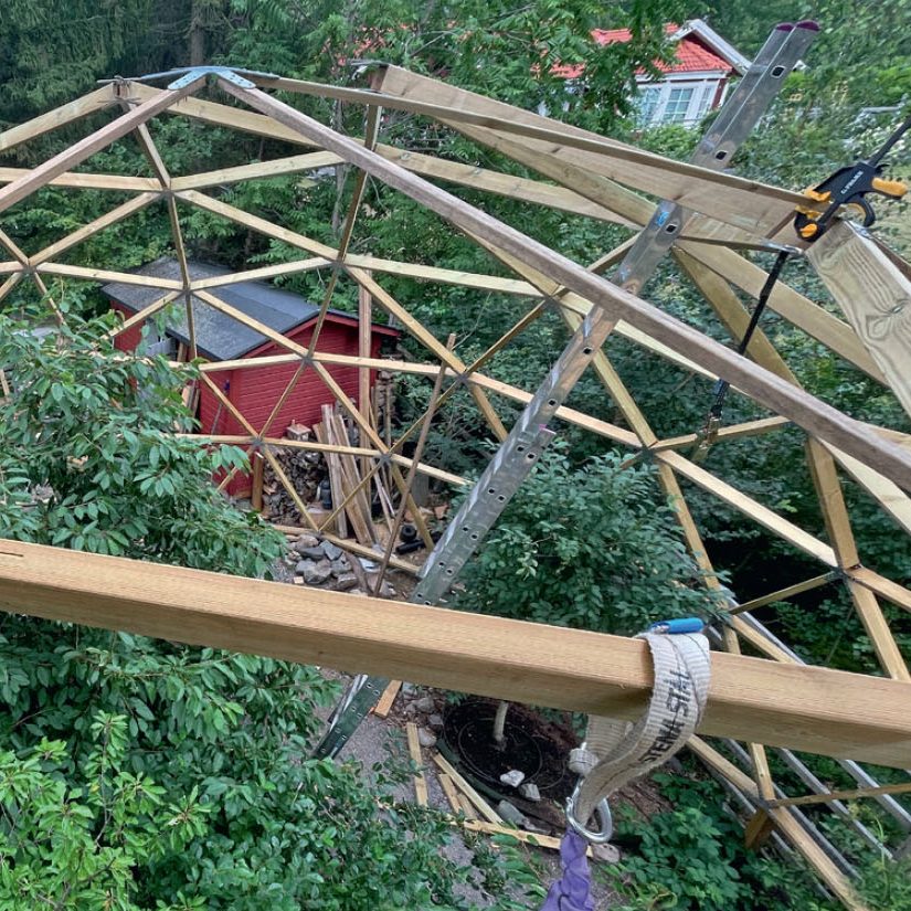 När du köper domebeslag hos VikingDome, får du allt du behöver för att bygga en dome - nästan. Du måste nämligen själv köpa virke samt material till fundament, tak, fönster, dörr osv.