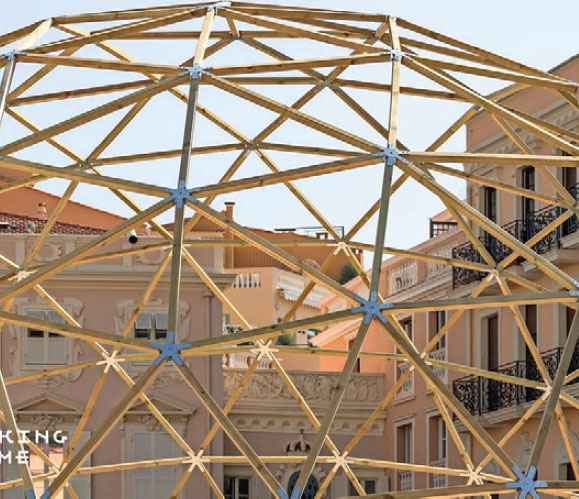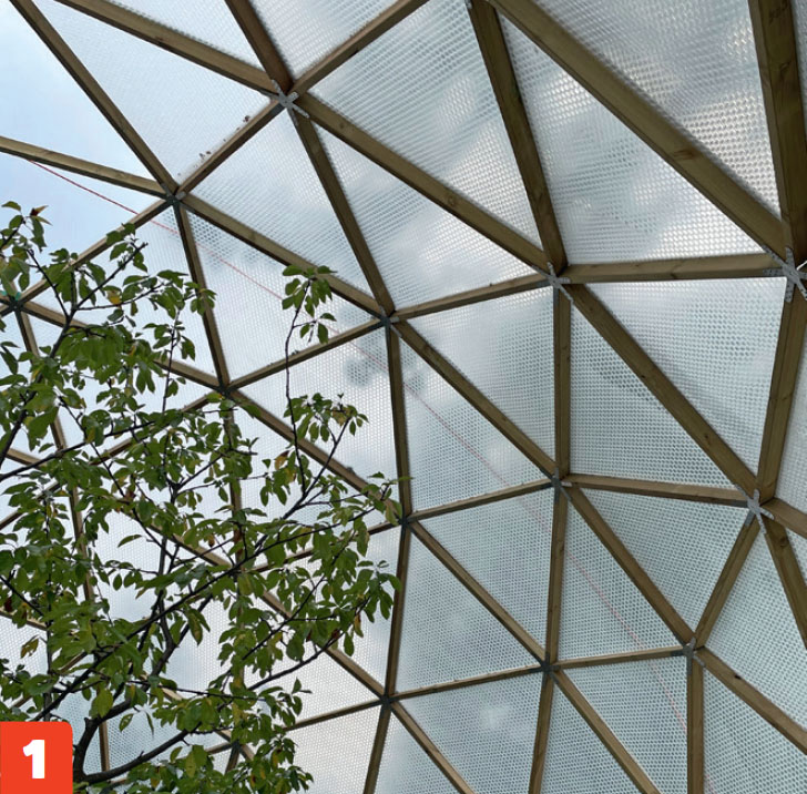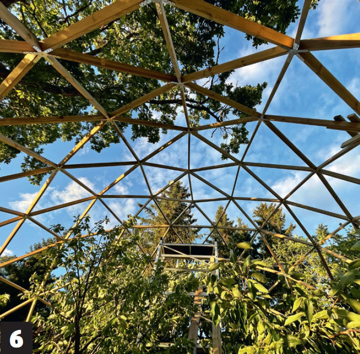 Därefter fixeras plastinklädningen ytterligare med trälister och glaslister, som skruvas fast på domens stomme.