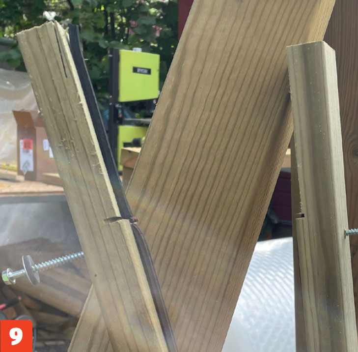 Avsluta med en list. Skarvarna avslutas med en list ovanpå PVC-förstärkningen. Listerna görs av 28 x 45 mm lister med en bit EPDM-band på undersidan, som hjälper till att täta skarvarna ytterligare.