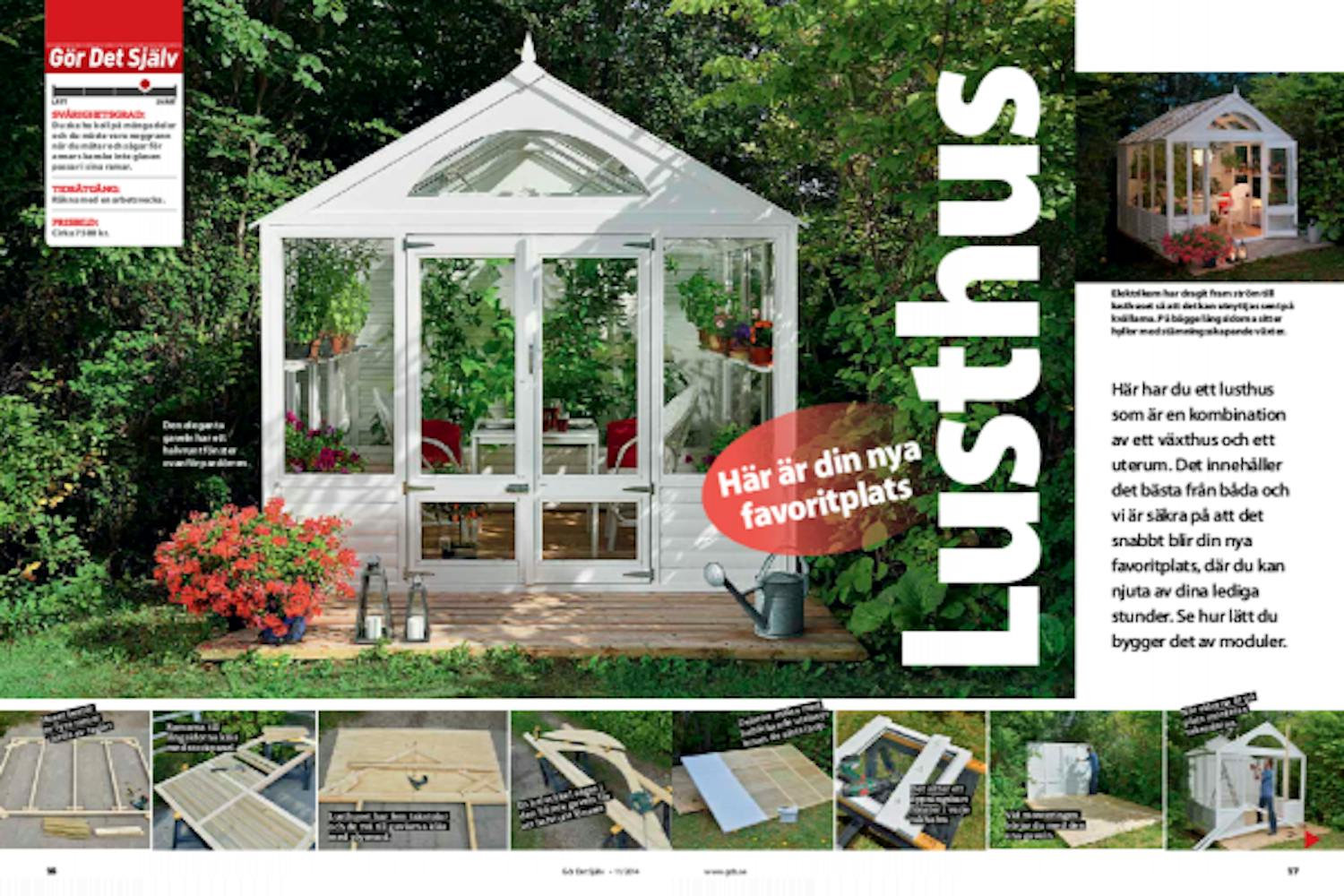 Lusthuset har som andra hus fyra sidor och de snickras var för sig och sätts ihop när de är klara. Varje sida består av en ram som har delats i fyra mindre fält. Dessa fält fylls sedan ut med antingen glas eller brädor och på framsidan med två dörrar.
