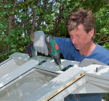 Du ska också montera falslister längs takåsen så att du kan montera fönstren. När du har satt fast glasband i falsen kan glaset läggas på plats.