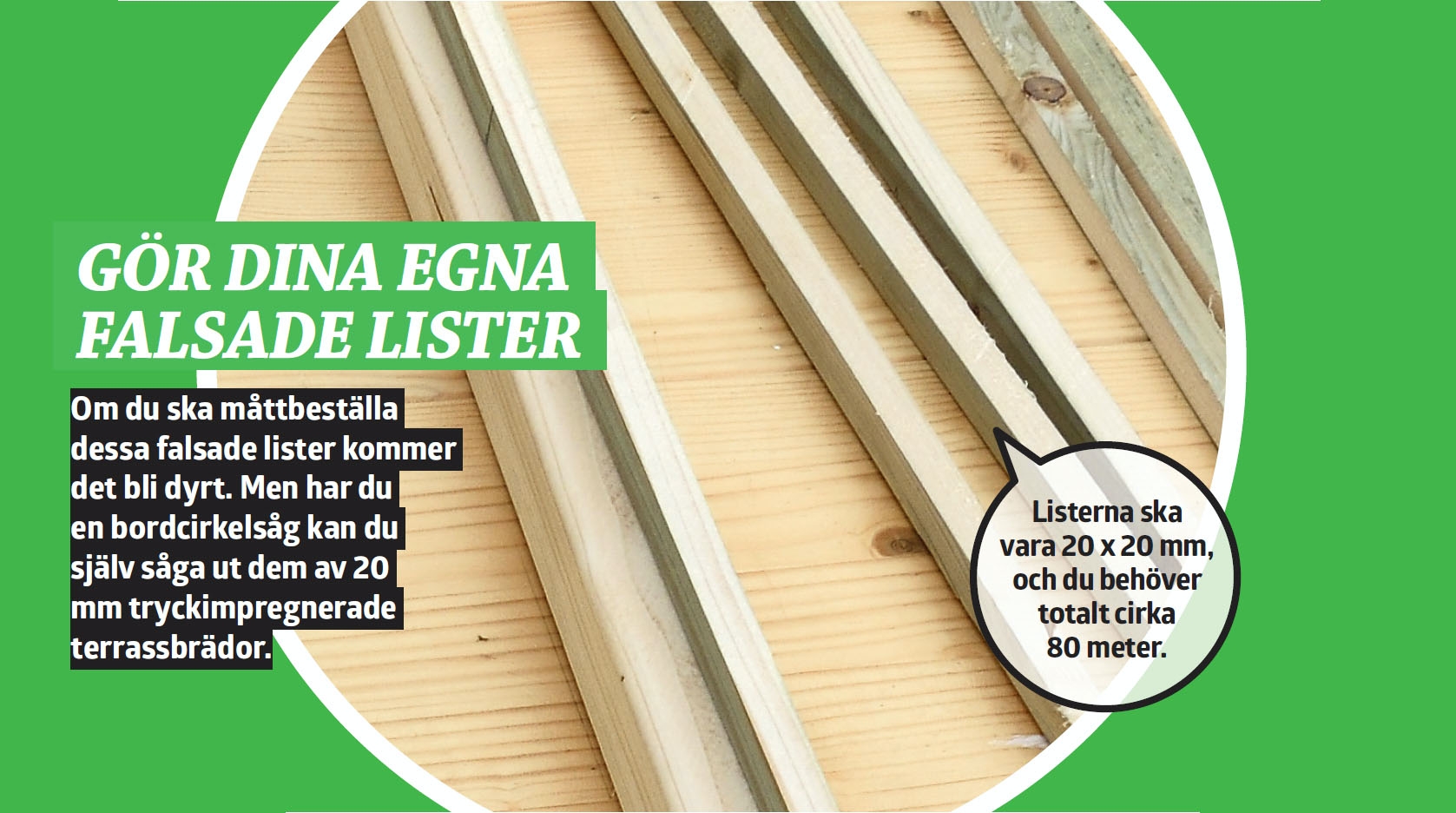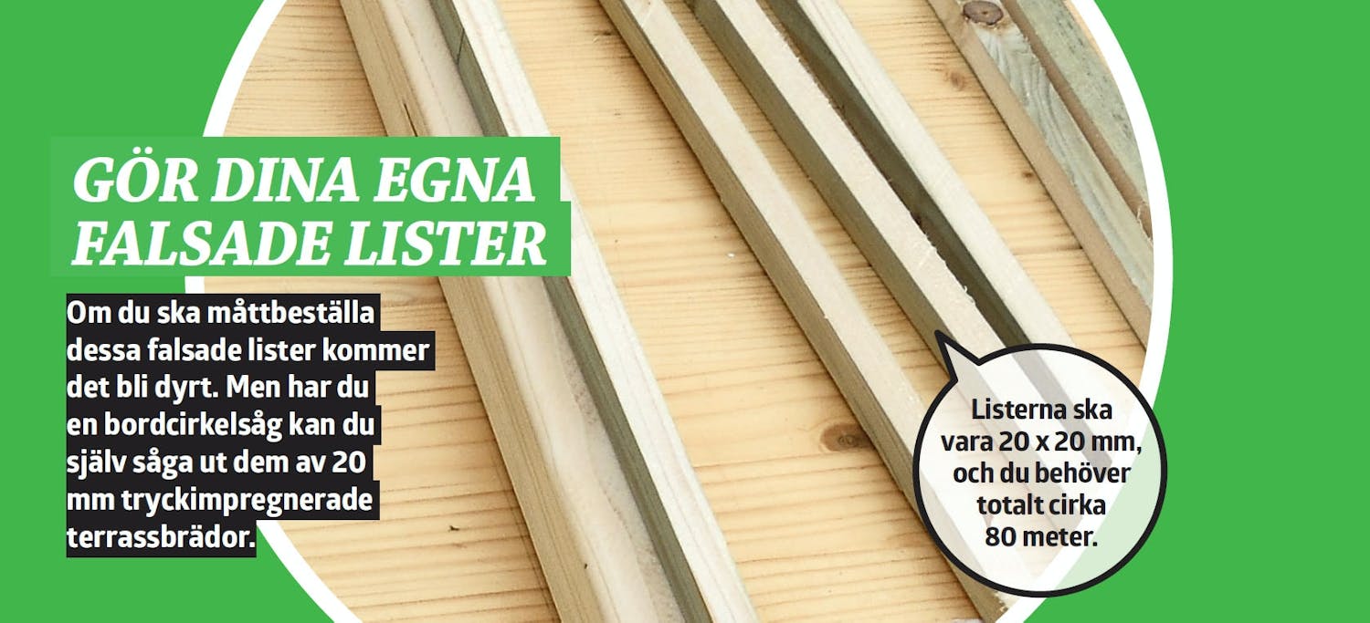 - Totalt ca. 80 m falsad list (S) till hela drivhuset