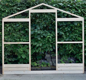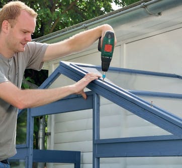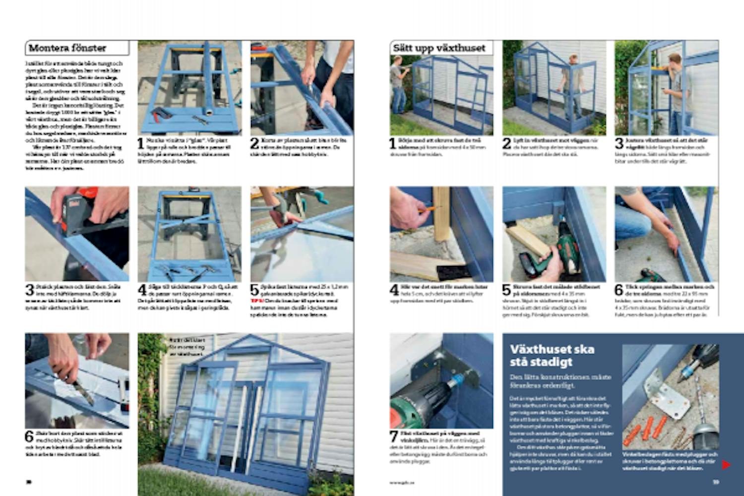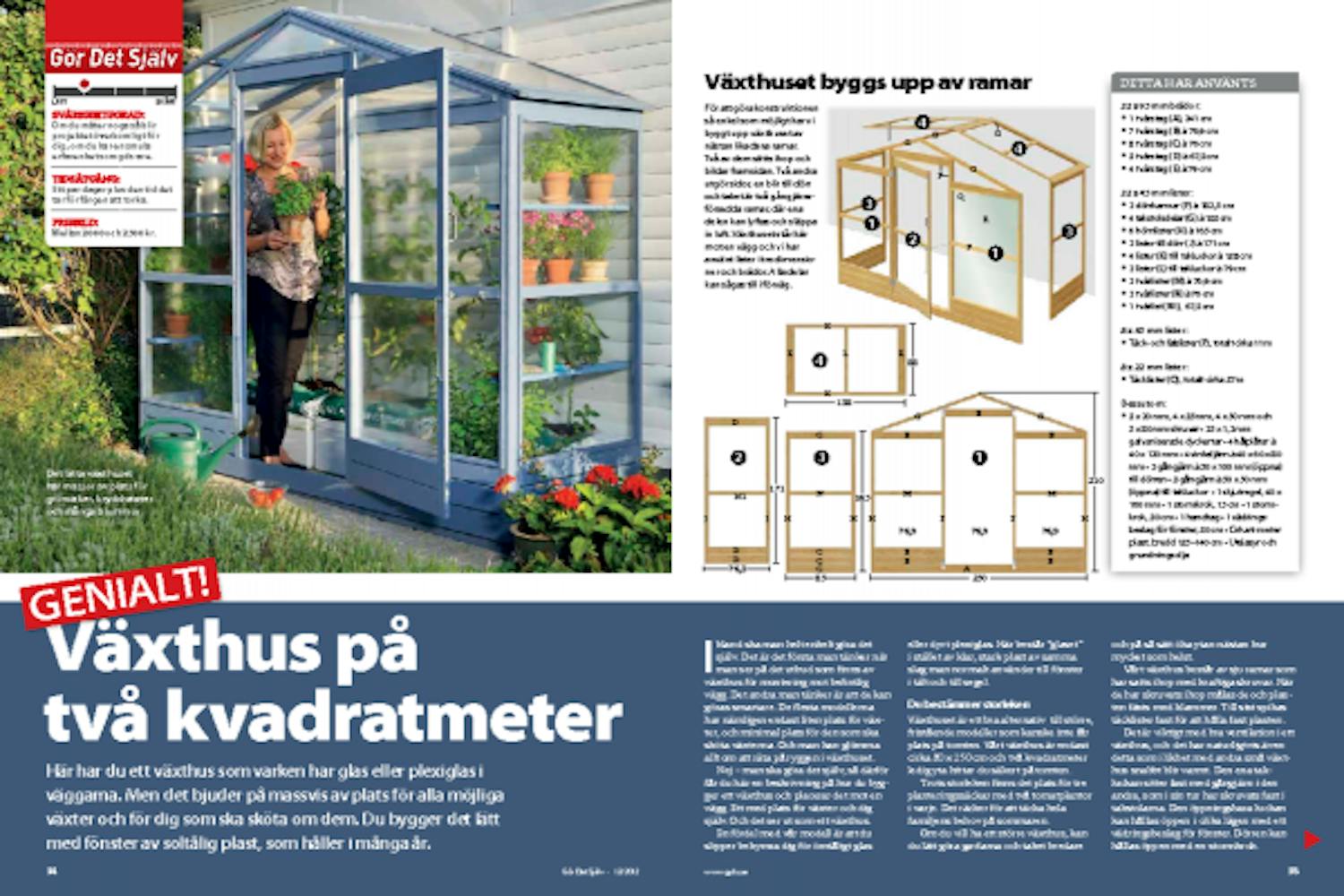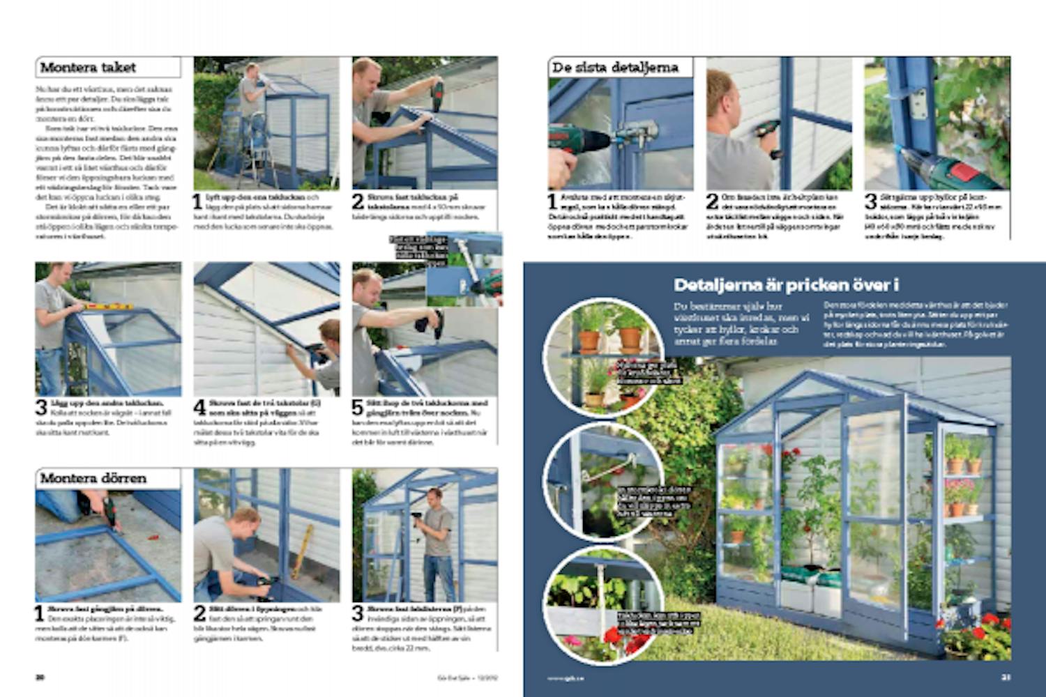 Nu har du ett växthus, men det saknas ännu ett par detaljer. Du ska lägga tak på konstruktionen och därefter ska du montera en dörr.