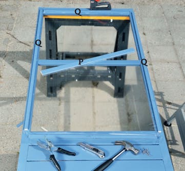Såga till täcklisterna P och Q, så att de passar runt öppningarna i ramen. Det går lätt att klippa listerna med listsax, men de kan givetvis sågas i geringslåda.