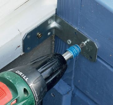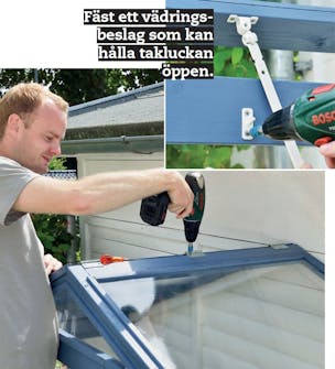 Skruva fast takluckan på takstolarna med 4 x 50 mm skruvar både längs sidorna och upptill i nocken.