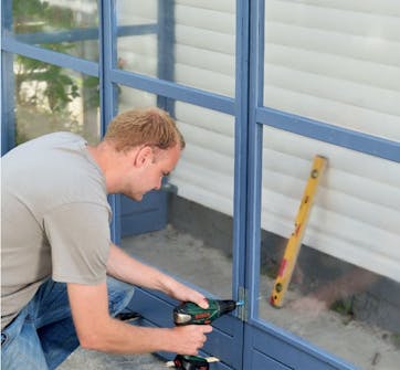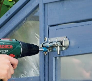 Avsluta med att montera en skjutregel, som kan hålla dörren stängd. Det är också praktiskt med ett handtag att öppna dörren med och ett par stormkrokar som kan hålla den öppen.