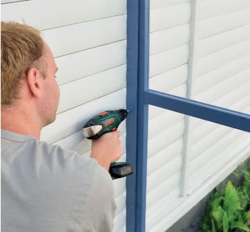 Skruva ihop listerna med 5 x 80 mm skruvar genom de förborrade hålen. Välj skruvar som inte rostar.