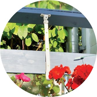 Som tak har vi två takluckor. Den ena ska monteras fast medan den andra ska kunna lyftas och därför fästs med gångjärn på den fasta delen. Det blir snabbt varmt i ett så litet växthus och därför förser vi den öppningsbara luckan med ett vädringsbeslag för fönster. Tack vare det kan vi öppna luckan i olika steg.