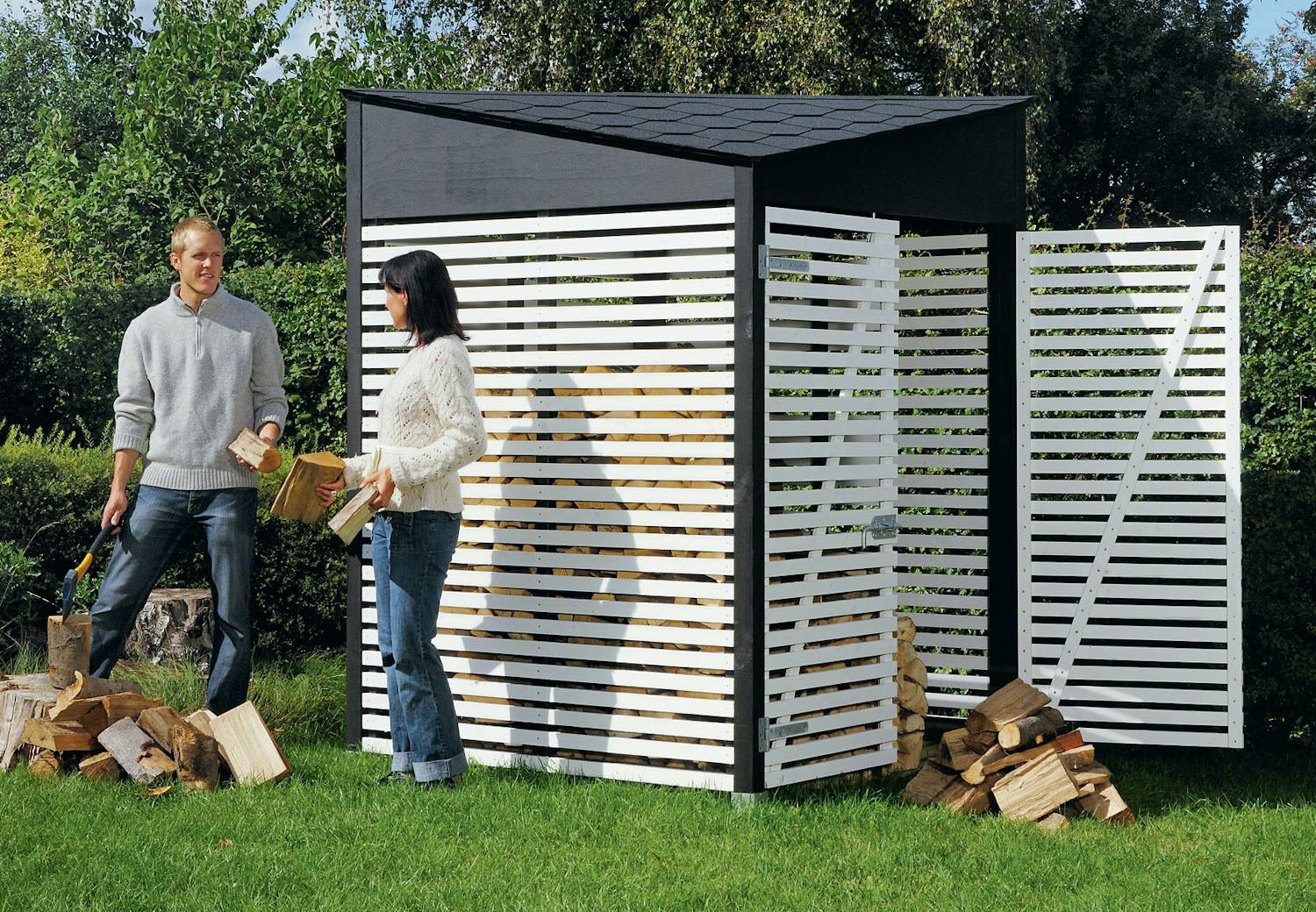 Det utvändiga måttet på boden blir 164 x 164 cm, medan golvet i vedboden är 150 x 150 cm.